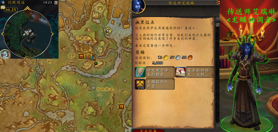 任务过程:将幽黑位点带给传送师艾瑞琳。