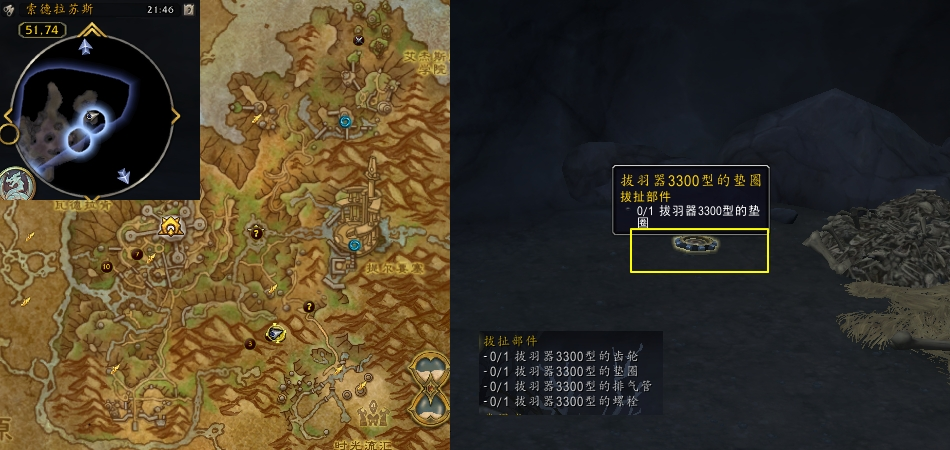 任务需求:接取任务后,前往(索德拉苏斯 51,72)的洞口处,拾取以下物品