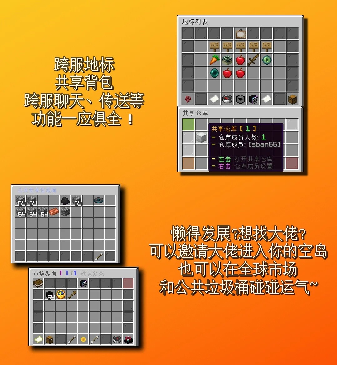 你也可以跟你的朋友们一起在空岛组队,共同发展