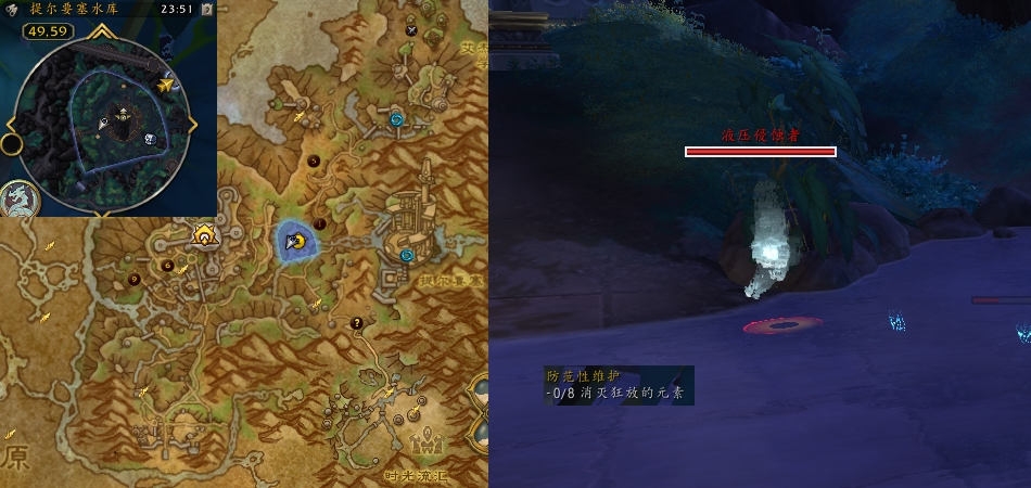 任务需求:接取任务后,前往(提尔要塞水库 49,59)附近,消灭8个任务目标 “液压侵蚀者”。