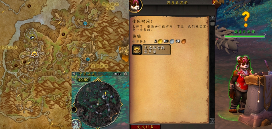 接取NPC:宁梦温泉推广员(瓦德拉肯 48,60)