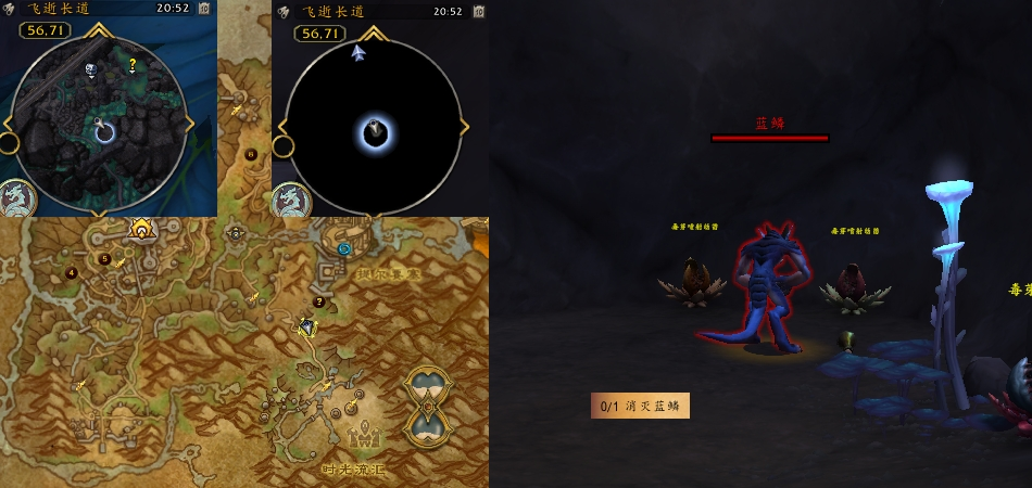 任务需求:接取任务后,前往(56,71 山洞中),击杀任务目标 “蓝鳞”。