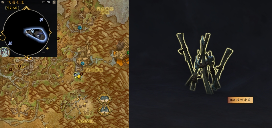 任务需求:接取任务后,前往(飞逝长道 57,66)附近,点击并摧毁地面上的8个 “矛箱”。
