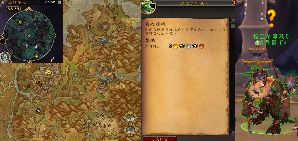 任务过程:将怀表交给团结花园(38,75)的格里尔姆佩奇。