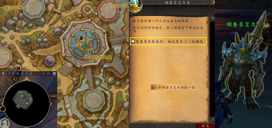 交付NPC:调查员艾力马(瓦德拉肯-守护巨龙之座,56,44)