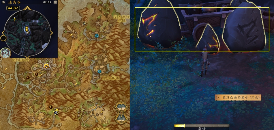 任务过程:接取任务之后,摧毁迷离谷(44,82)、(44,81)处的箱子。