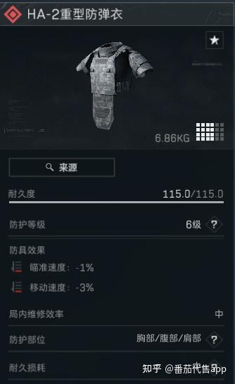 六甲里面唯一只能在交易行购买到(不能制造,任务会送)的六级护甲,现在售价在450w左右,可以说是非常的贵了,六甲中最少只减1%的瞄准速度和%3的移动速度。