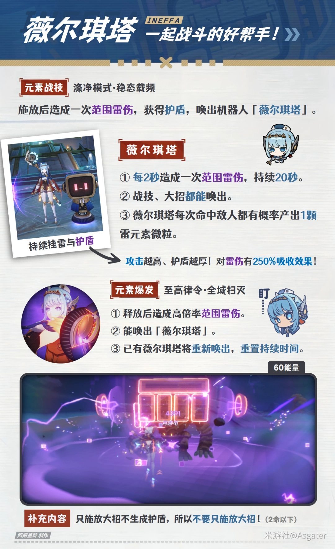 ① 战技、大招均为弱雷攻击(1元素量)。