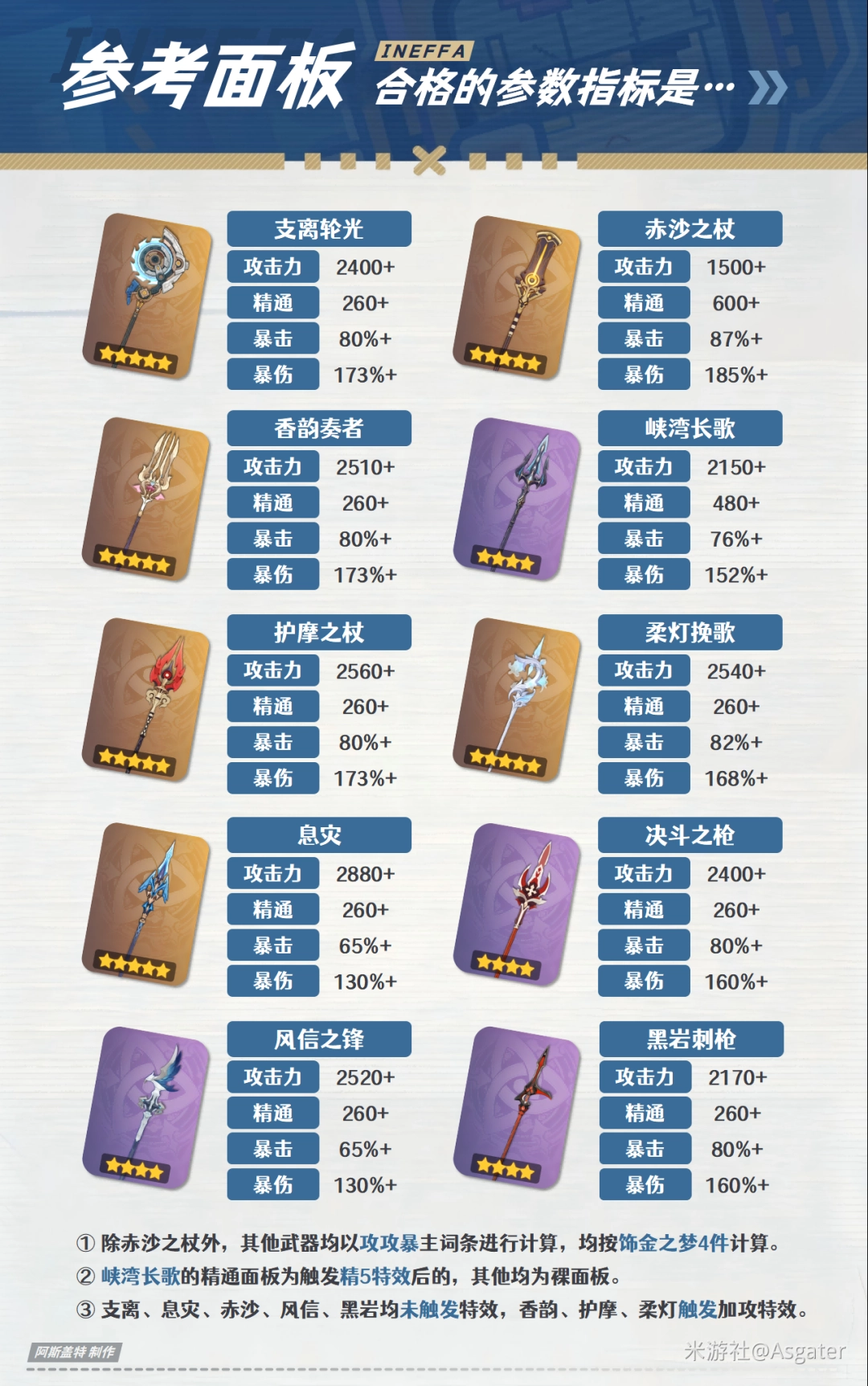 ③ 上述武器都没有时,可选【风信之锋】(触发反应后提高攻击/精通)、【黑岩刺枪】、【且住停御咄】过渡。