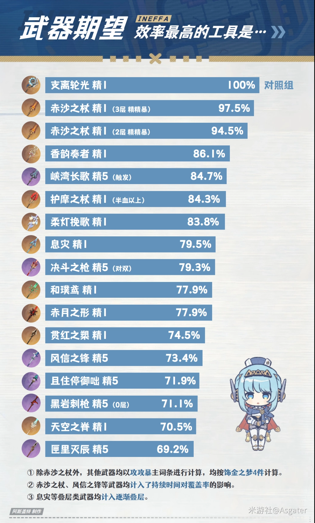① 5星武器还有香韵奏者(暴伤/攻击加成)、护摩之杖(暴伤/攻击提升)、柔灯挽歌(暴击/攻击加成)、息灾(高额攻击加成)等。