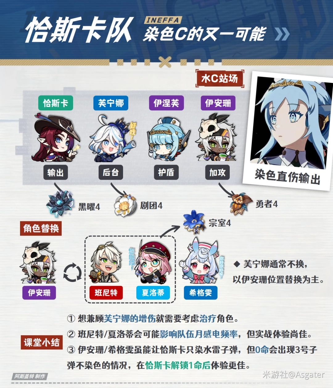 ③ 虽然对伊涅芙有不错的提升,但该玩法还是有些“本末倒置”的——具有优秀脱手机制的伊涅芙更适合搭配水雷角色组建队伍。