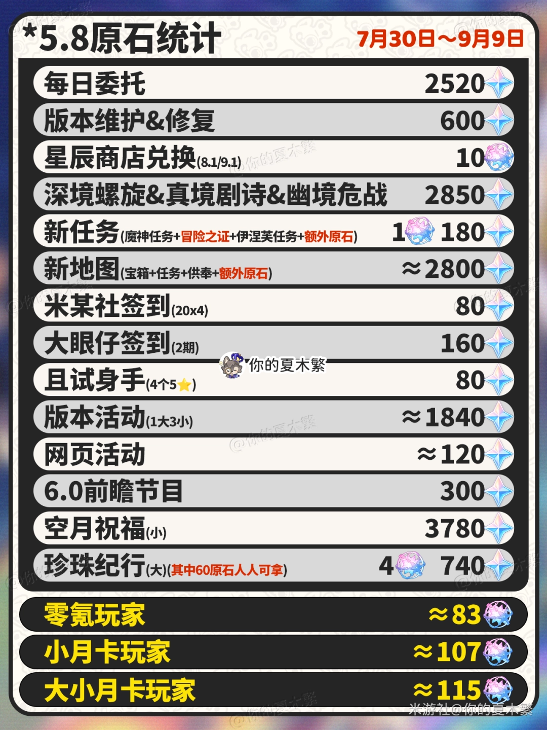 就在最近原神上线了5.8版本,本次版本更新上线了许多新内容,有新剧情,新角色,新武器,又到了夏活的版本,会上线新的限时地图,还有新的任务,那么下面就给大家带来5.8原石汇总。