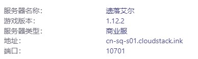 我的世界里面有很多的服务器,每个服务器都有自己的独特的玩法,今天给大家带来的服务器的名字叫:遗落艾尔,那么下面就是这个服务器的一个具体的IP地址.