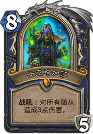 偶数萨的后期核心,战吼萨的质量之选,哈加沙刚开始并不被看好,是因为萨满的形态不太多,就目前的形态来说,哈加沙都是必不可少的后期卡牌;未来可以预见的是,只要萨满走中速控制形态,哈加沙就会有一席之地。