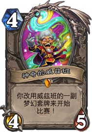 威兹班曾经辉煌过,但很多人表示,这张卡其实就是玩玩而已,在天梯难以上分,我们推荐这张卡的原因也比较简单:更快融入新版本,威兹班套牌中有比较多的套路在新版本可能是主流套路,可以给玩家提供一些思路上的参考,再说一张卡,玩18套牌,金子都不换啊。