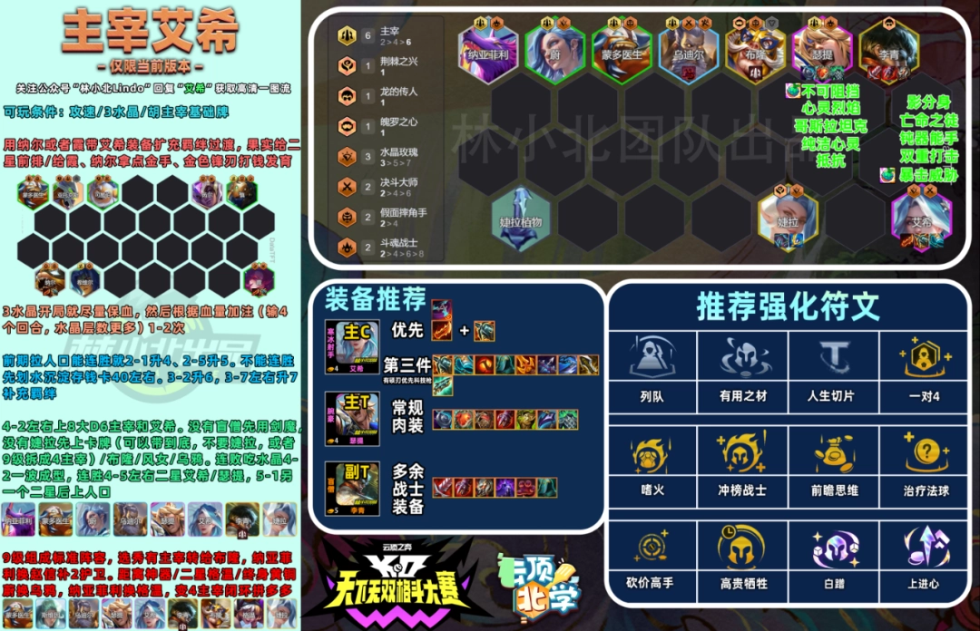 云顶之弈S15版本天下无双格斗大赛,欢迎来到天下无双格斗大赛!打造你的梦之队,一路冲击巅峰,那么有不少小伙伴好奇云顶之弈s15有什么强力阵容,下面就给大家带来s15主宰艾希阵容推荐。