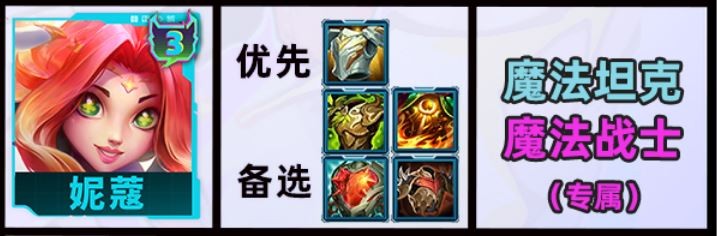 妮蔻装备优先推荐板甲,狂徒,日炎,反甲等。