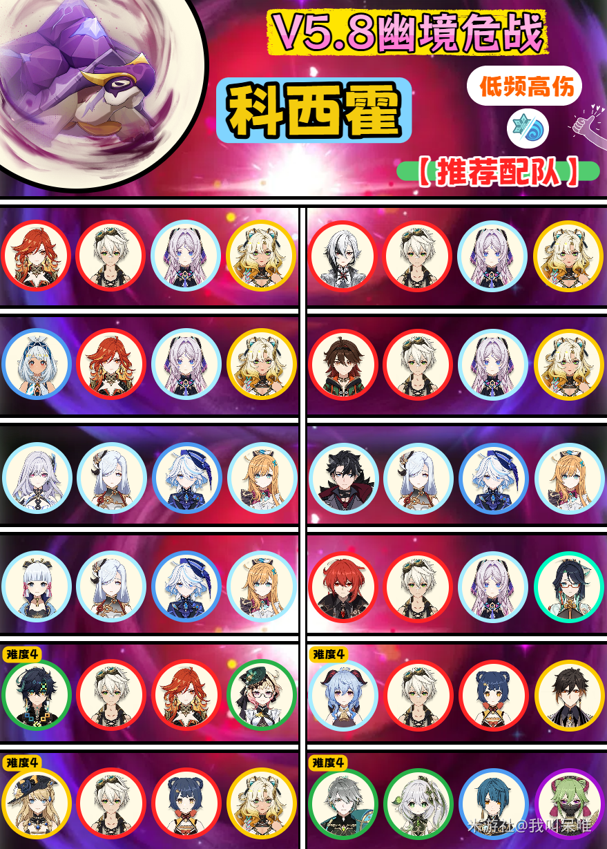 其次,选择可高频火、草、冰附着的队伍,同时兼具较强生存能力的队伍。