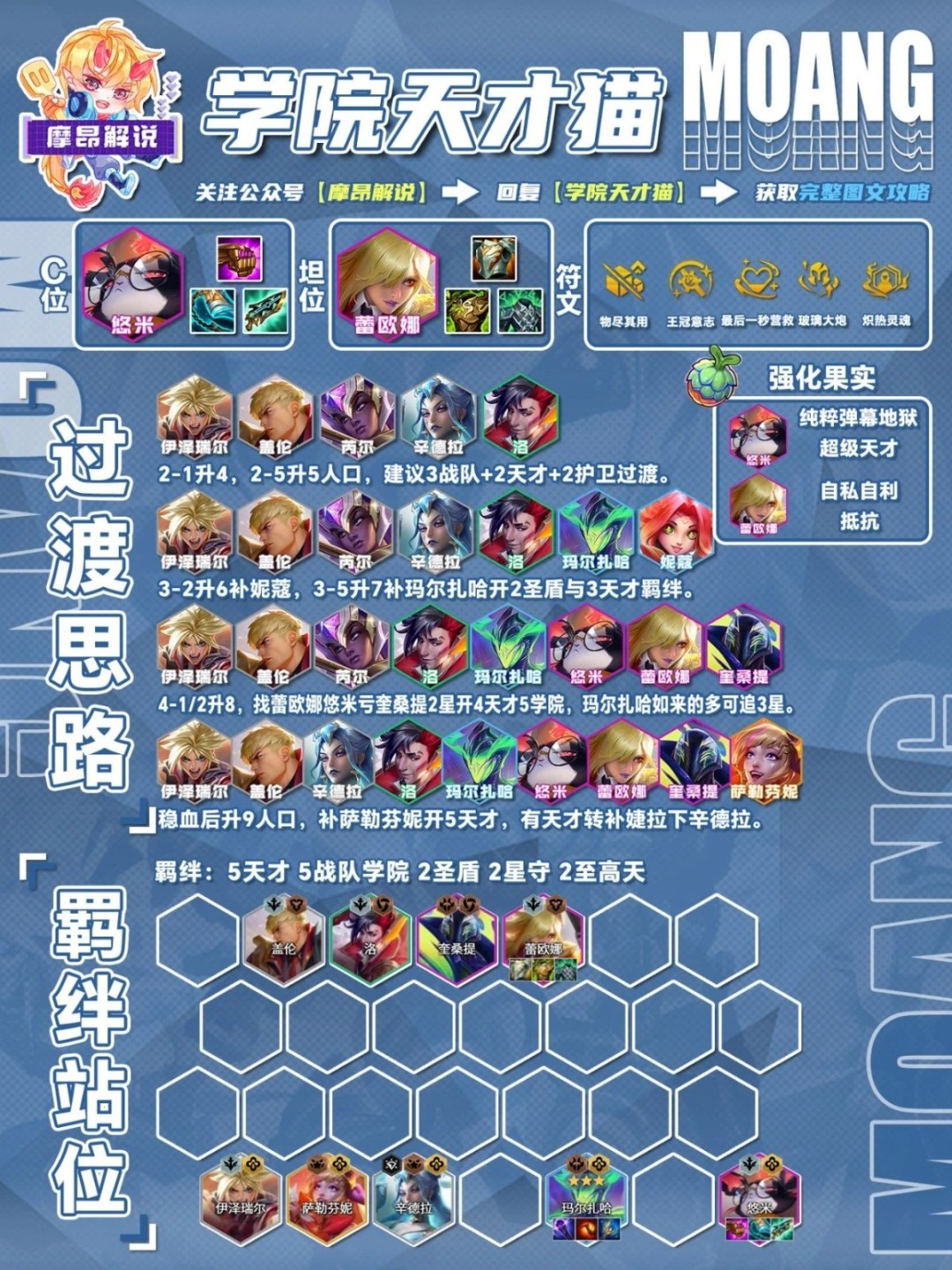 云顶之弈S15版本天下无双格斗大赛,欢迎来到天下无双格斗大赛!打造你的梦之队,一路冲击巅峰,那么有不少小伙伴好奇云顶之弈s15有什么强力阵容,下面就给大家带来s15学院天才猫阵容推荐。