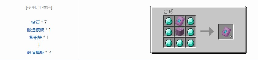 我的世界游戏里面的幽静锻造模板获得方法:通过合成来获得,所需材料7个钻石+1个锻造模板+1个紫珀块可以获得2个幽静锻造模板,可以在锻造台中为各种原版盔甲添加纹饰。