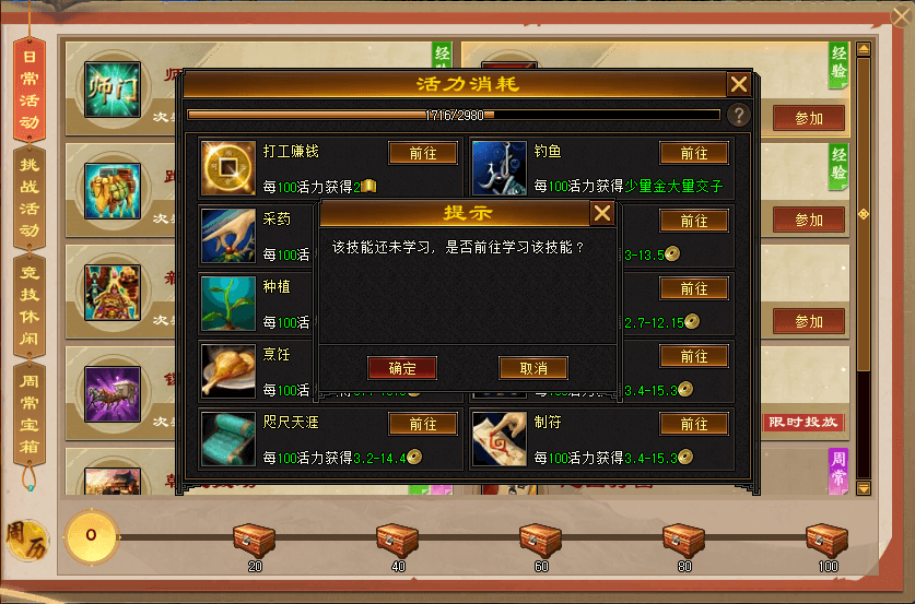 玩家角色等级≥10级即可在【修行书】-【日常活动】-【活力换钱】中选择【采药】,点击【前往】并选择【前往学习】即可自动前往学习。也可以在洛阳严百草(119,169)、苏州王审芝(106,109)、大理刘寄奴(99,133)、楼兰城莎伊莲(33,193)、束河古镇魏晾(186,147)处都可以学习采药技能。