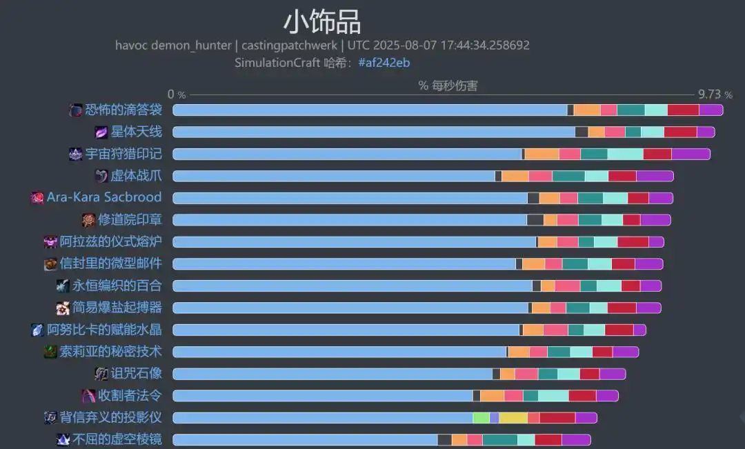 浩劫恶魔猎手-单目标,最佳饰品为滴答作响的恐慌之袋(塔扎维什,帷纱集市)和星界触须(熔炉2号,卢米萨尔)。
