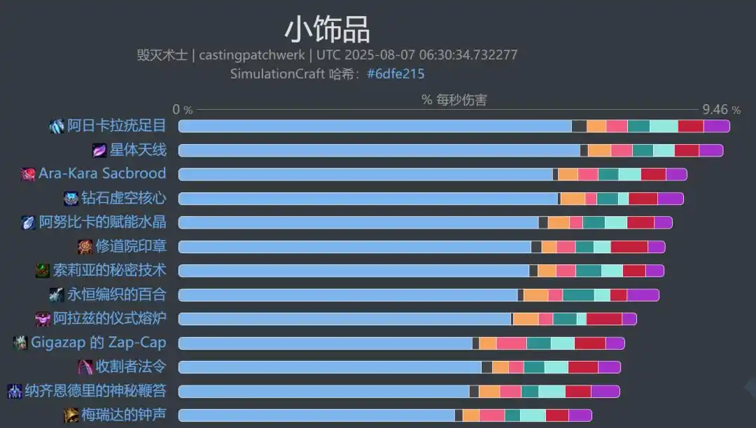 毁灭术士-单目标,最佳饰品阿兹希卡兰疣足(奥尔达尼生态圆顶)和星界触须(熔炉2号,卢米萨尔)