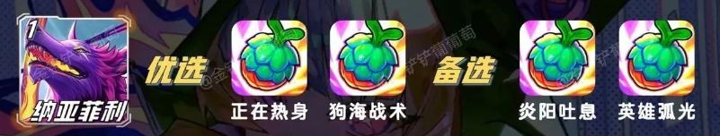 纳亚菲利优先推荐正在热身,狗海战术,备选炎阳吐息,英雄弧光。