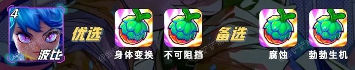波比优先推荐身体变换,不可阻挡,备选腐蚀,勃勃生机。