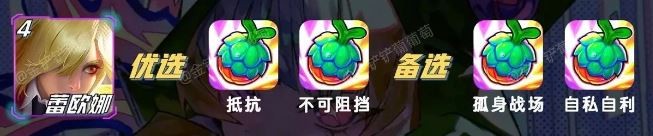 蕾欧娜优先推荐抵抗,不可阻挡,备选孤身战场,自私自利。