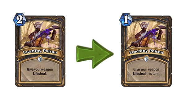 最后一个削弱就是弑君贼的核心吸血药膏了,虽然费用少了1费,但是效果是只在本回合生效了,意思就是只能吸一次血,这对弑君贼来说无疑是很致命的,毕竟盗贼很多时候都是靠卖脸回血啊。