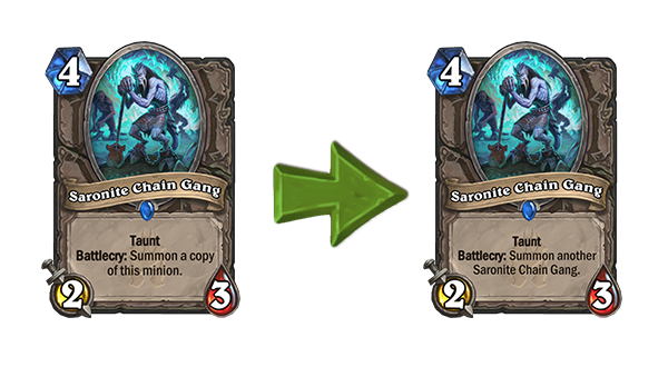 萨隆苦囚的性价比一直很高,比起萨满的狼魂还少了一费,现在更是战吼萨的关键配件,但是这次改动是把召唤一个自身变成了召唤一个萨隆苦囚,意思就是战吼萨得到他的战吼也并不能召唤沙德沃克了,这对战吼萨无疑是一个致命的打击。