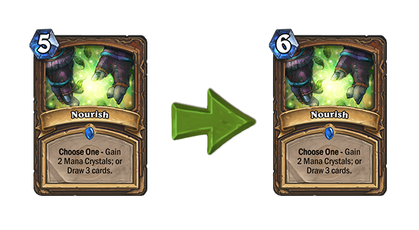 滋养同样也是一张跳科技的关键卡,虽然以前很多人用滋养拿来过牌,但现在有了终极感染,滋养的作用很多时候也变成了跳费,这次从5费改成了6费,影响同样很大,并且终极感染也快退环境了,那时候德鲁伊又用什么来过牌呢?愤怒的过牌能力明显差很多啊。