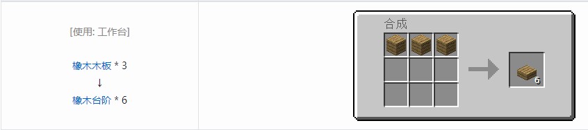 我的世界游戏里面的橡木台阶合成方法:需要材料3个橡木木板可以获得6个橡木台阶,可使用3个对应方块合成获得或使用1个对应方块在切石机切石获得。