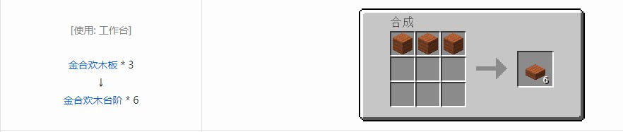 我的世界游戏里面的金合欢木台阶合成方法:需要材料3个金合欢木板可以获得6个金合欢木台阶,可使用3个对应方块合成获得或使用1个对应方块在切石机切石获得。
