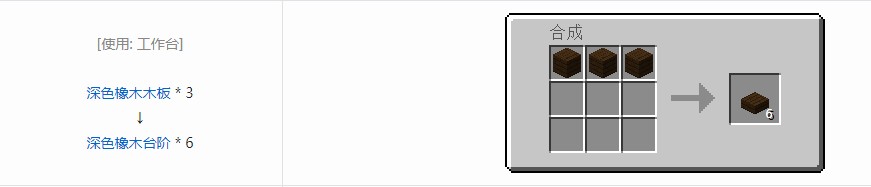 我的世界深色橡木台阶可以通过合成方法来获得,需要材料3个深色橡木木板可以获得6个深色橡木台阶,可使用3个对应方块合成获得或使用1个对应方块在切石机切石获得。