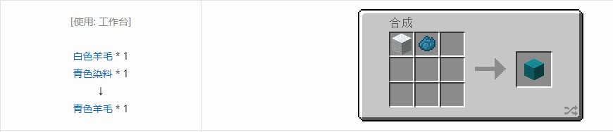 我的世界青色羊毛制作方法:1个白色羊毛+1个青色染料可以获得1个青色羊毛,羊毛也可用于合成旗帜、床、地毯、画,羊毛可作为燃料,每个羊毛可以烧炼0.5个物品,羊毛可以阻断幽匿感测体的感应振动。