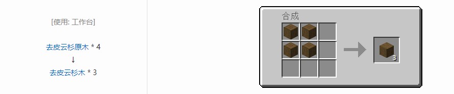 我的世界去皮云杉木制作方法:4个去皮云杉原木可以获得3个去皮云杉木,可使用4个对应去皮原木合成获得,每次合成时获得3个,可用于在合成中替代原木,也可用于当做燃料使用。