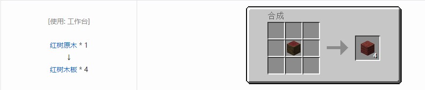 我的世界游戏里面的红树木板制作方法:1个红树原木可以获得4个红树木板,木板可使用对应原木/去皮原木/木头/去皮木头合成获得,每次合成时获得4个。
