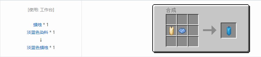 我的世界游戏里面的淡蓝色蜡烛制作方法:需要材料1个蜡烛+1个淡蓝色染料可以获得1个淡蓝色蜡烛,可使用1根蜡烛和1个对应染料合成获得,每次合成时获得1个。