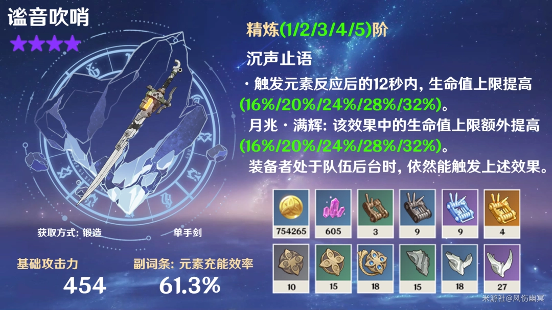 就在最近原神终于上线了月之一版本,还上线了新角色菈乌玛,还有新地图,新武器,上线了挪德卡莱地区的锻造武器,那么有不少小伙伴好奇谧音吹哨可以给谁用,下面就来告诉大家。
