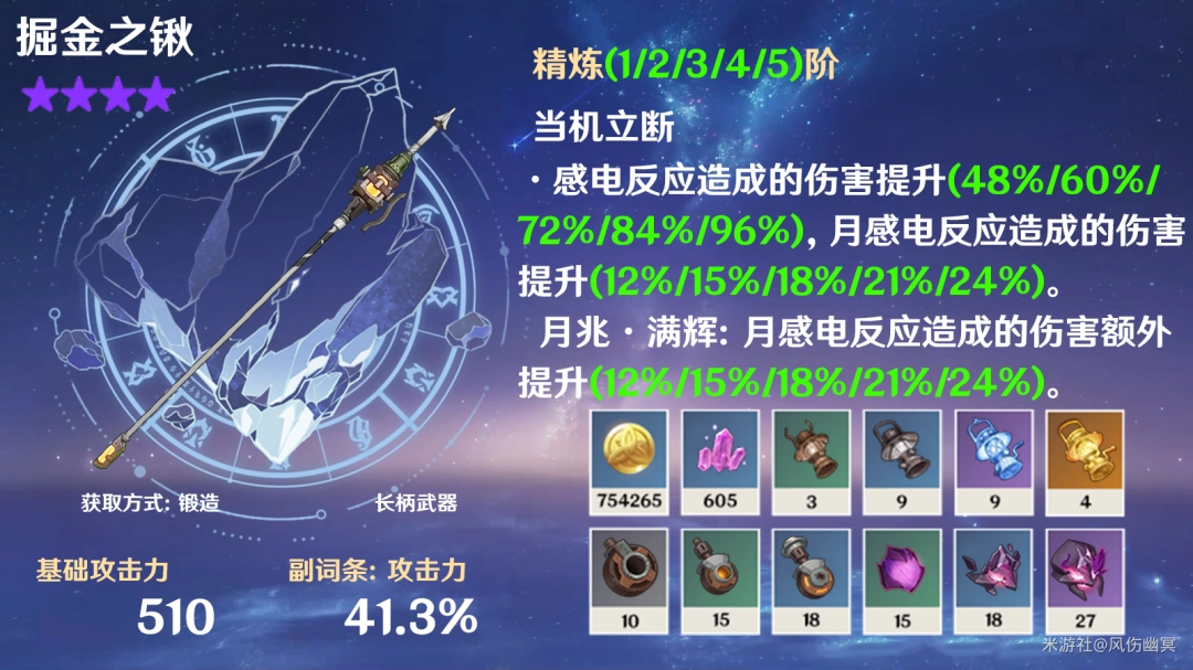 挪德卡莱锻造武器,适合雷或水的角色戴,并且只能配队感电或月感电。