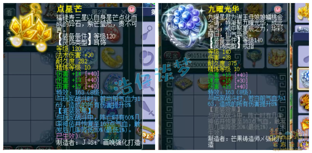 耳饰下排三伤害,戒指下排双伤害一速度,全部打了10锻星辉石,特效8级163。