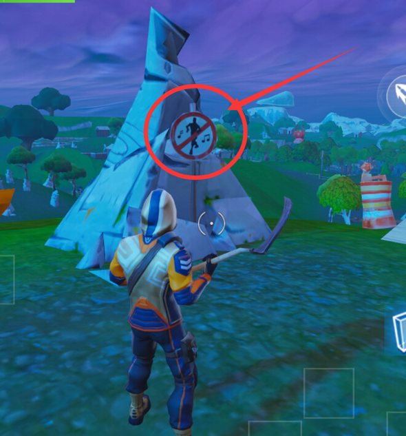 禁区就是下图这里,有个禁止跳舞标识的地方。我们站在这个标识前跳舞就行了。