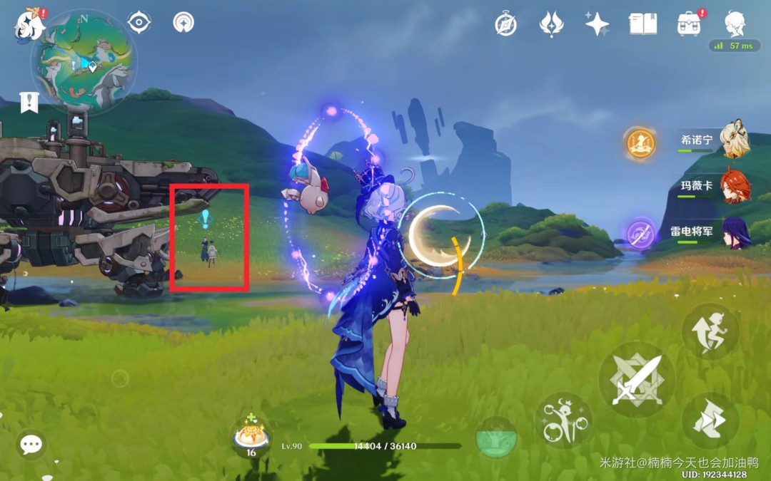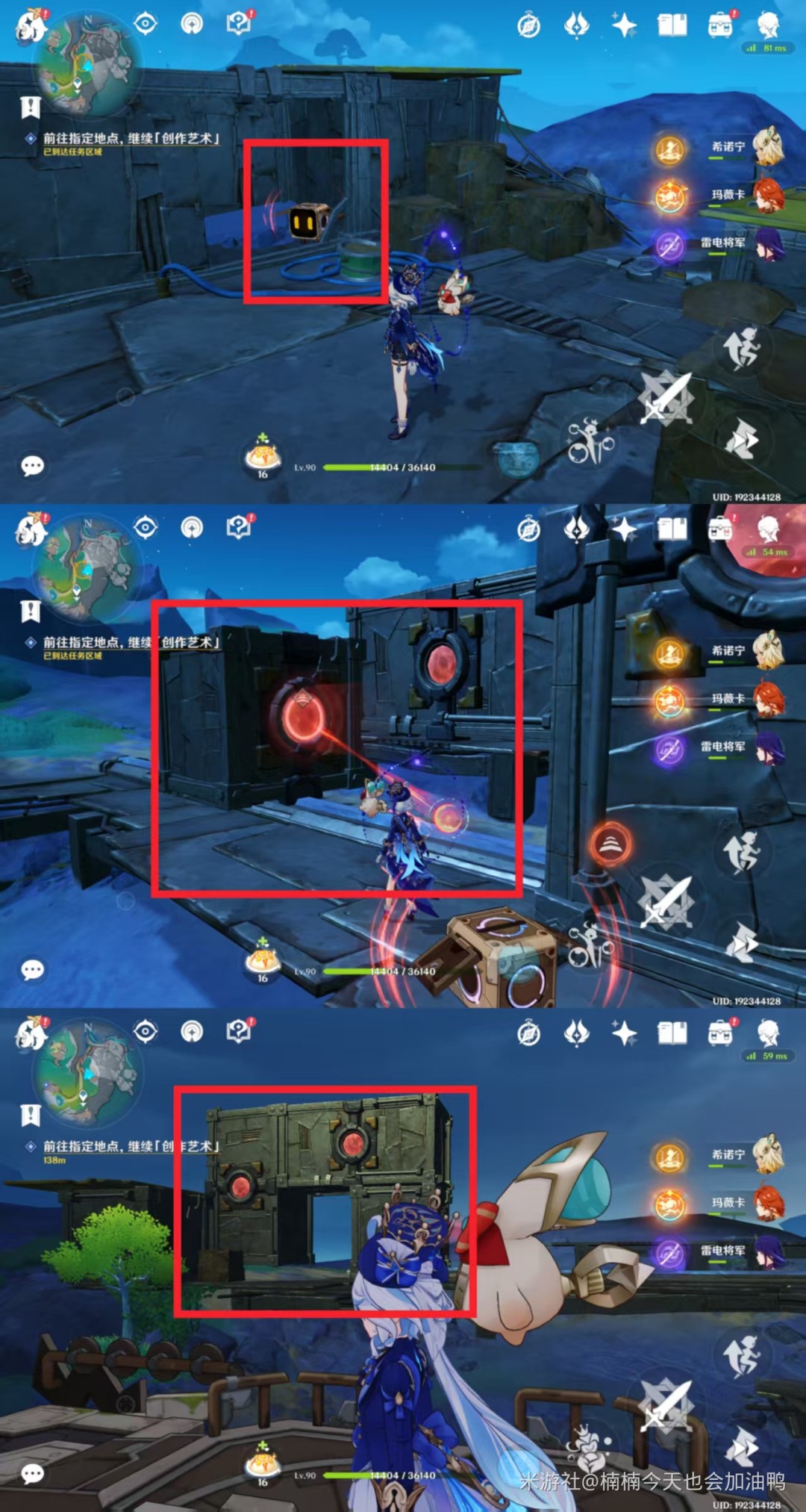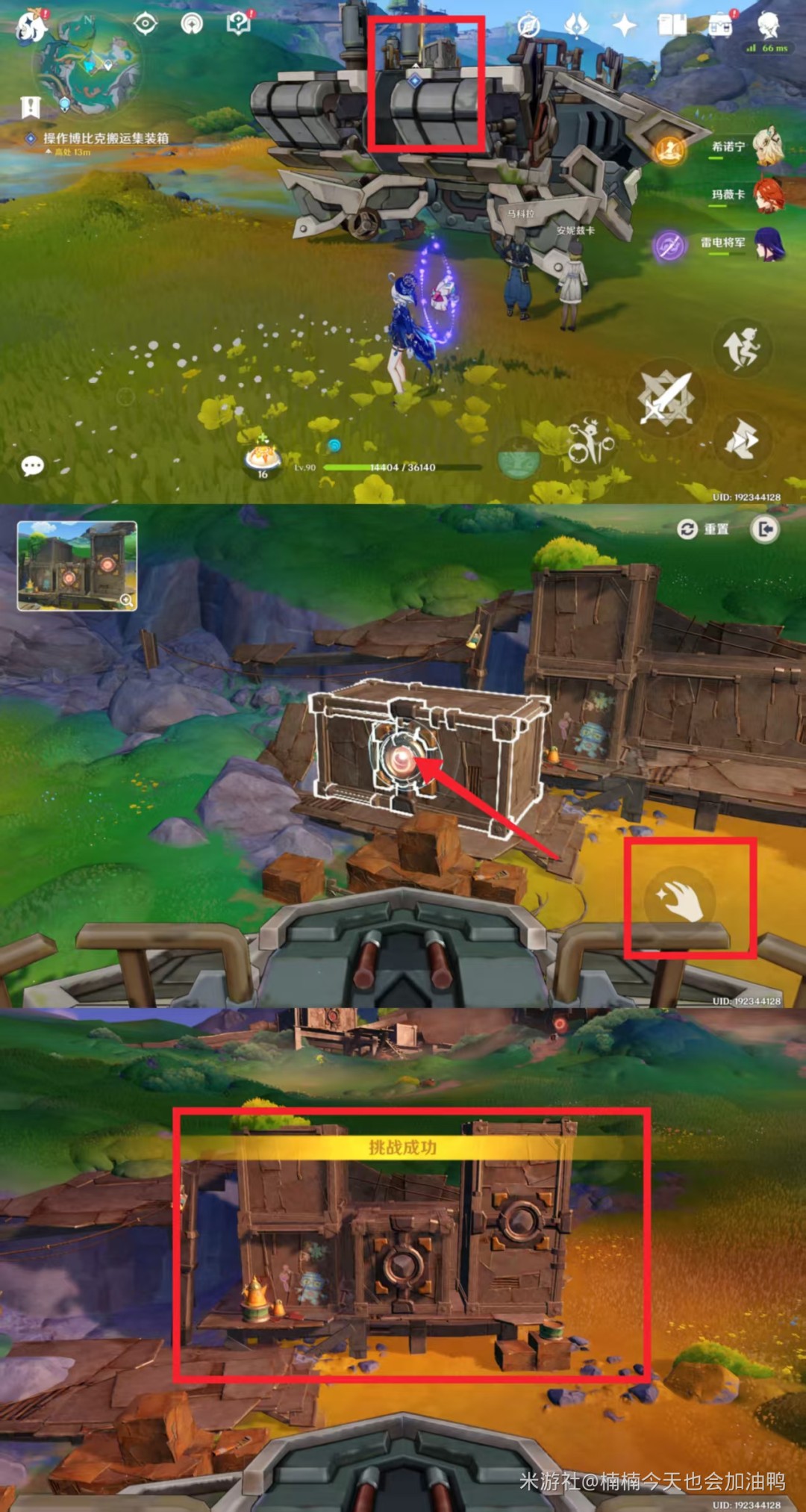 完成后会进入剧情,大机器人被愚人众抢走了,追到洞穴后发现门是锁着的,出来来到山坡上,拾取能量球先推右边的箱子,再推左边的箱子操控吊臂