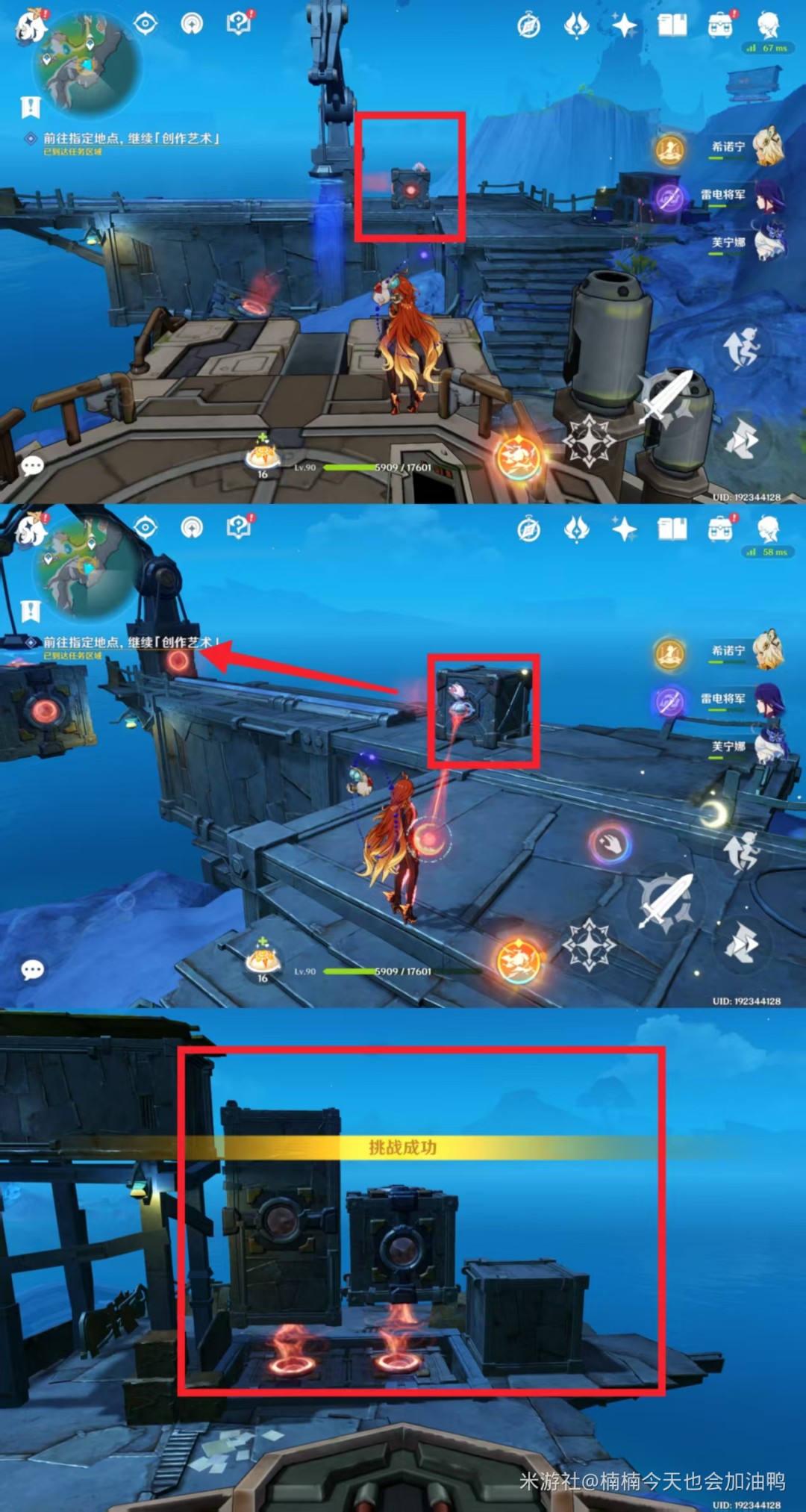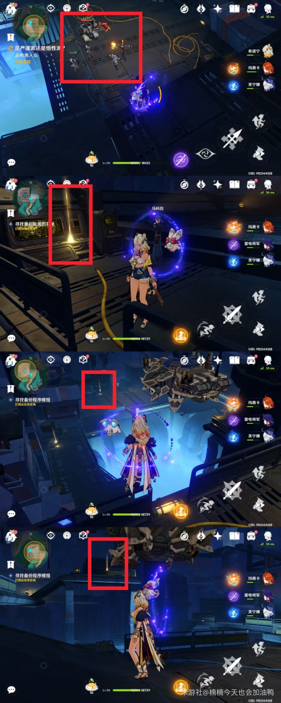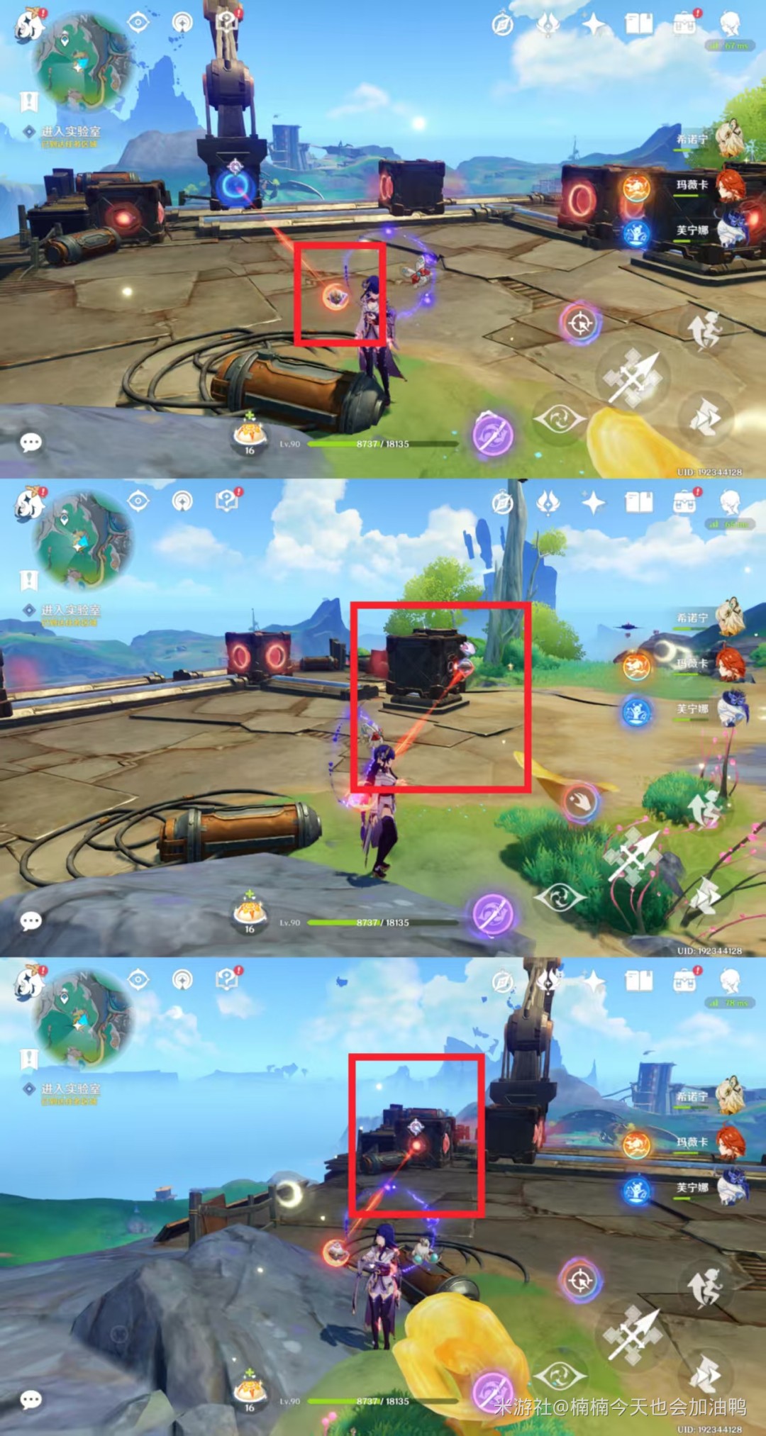 完成后会进入剧情,大机器人被愚人众抢走了,追到洞穴后发现门是锁着的,出来来到山坡上,拾取能量球先推右边的箱子,再推左边的箱子操控吊臂