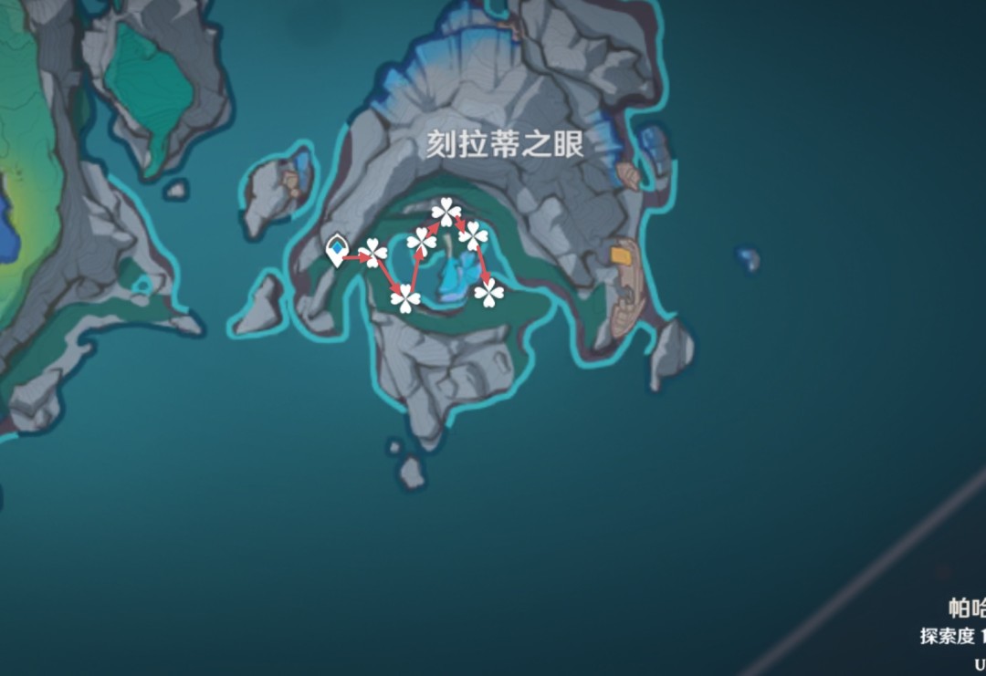 ●位于「刻拉蒂之眼」,沿路线可采集16个「霜盏花」;