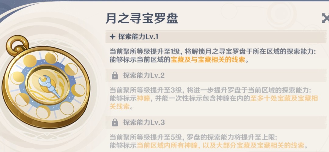 二:三个聚所开启后,即可供奉“月之印”,获得月之寻宝罗盘和升级罗盘等级