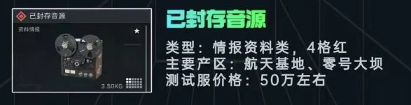 已封存音源:情报资料4格红,实际价值53万左右,产量和军用信息终端相当。