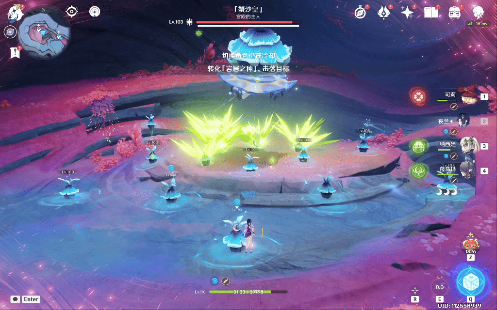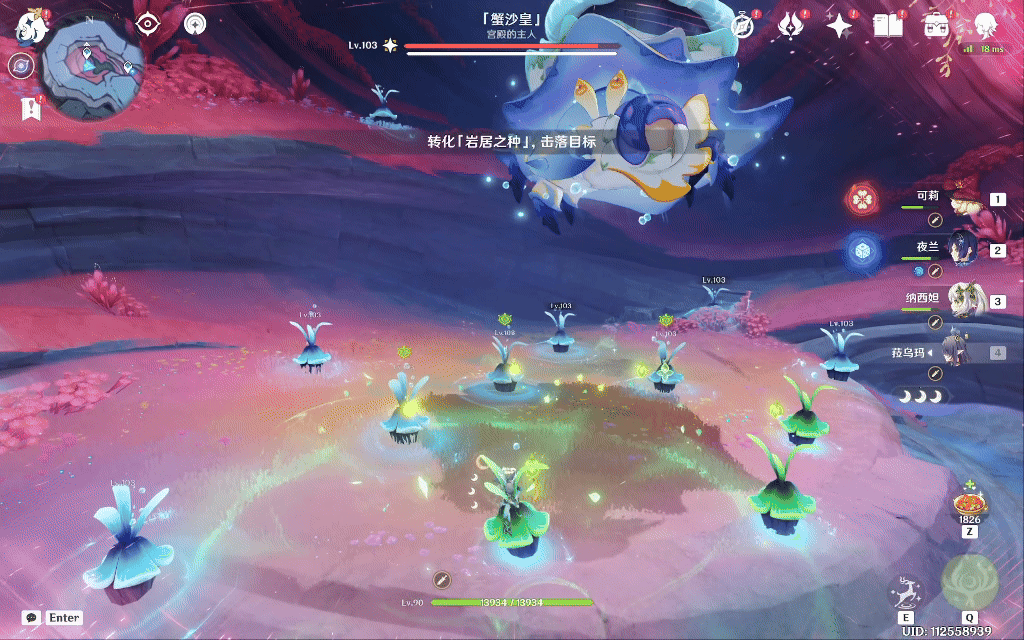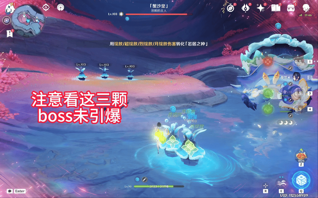 如下图,瘫痪后转化的「岩居之种」并未对boss造成伤害